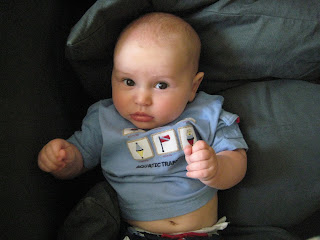 when we got home, mommie and daddie got ready for the wedding. i had two babysitters - aunt leah's close friends nancy and her hub hub brent. i had so much fun with them. they read me books, sang me songs, and then put me down to sleep in the bathroom. they are not crazy people....they put me in the bathroom because daddie is crazy. he put my crib in there because he thought i'd sleep better where there was less sound and light. HE WAS RIGHT! the bathroom sleeping arrangements were awesome! i was so happy that mommie and daddie hada babysitter so that they could dance all night long! i heard in the morning that they danced their faces off. they said the wedding was so much fun. the next morning we left early so daddie could get to work. we stopped at a SheetZ's - ask daddie how to say it and he'll say SHeeeeeeeeetz. we got home at 4pm so daddie could work from 5pm to 7am! he was tired and slept a lot of the car ride and he has to work every day this week from 5pm to 7am. yuck! the weekend was great! and i'm still eating lots of different foods and loving it! nom nom nom.